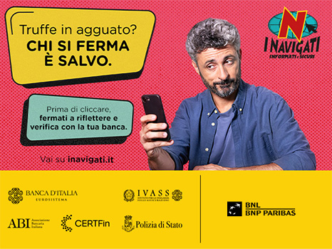 La campagna è stata possibile grazie alla collaborazione promossa da CERTFin con Banca d’Italia, ABI, Ivass, Polizia di Stato e le principali banche e istituzioni finanziarie.
